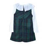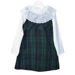 <span style="font-size: inherit">Tessuto in tartan blu e verde in viscosa e poliammide. Prezioso tessuto bianco ricamato per la camicia. Gonna con incontri, gilet foderato con bottoni.</span>