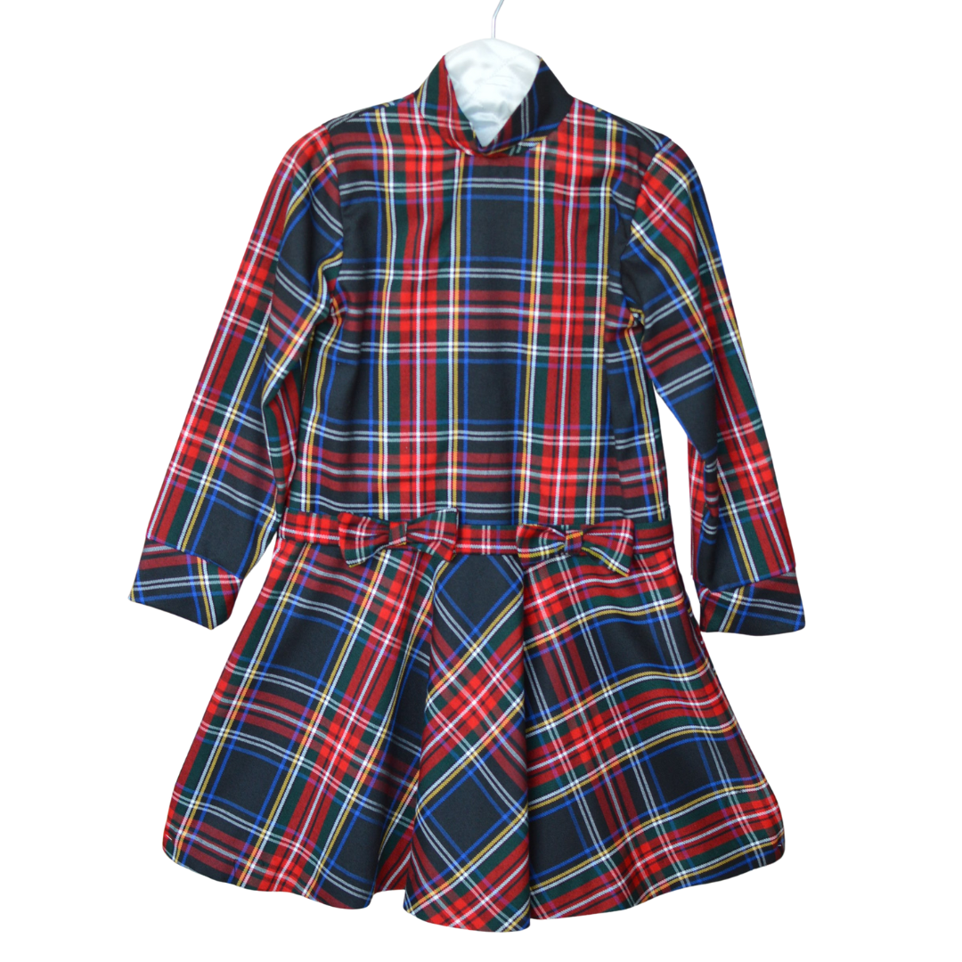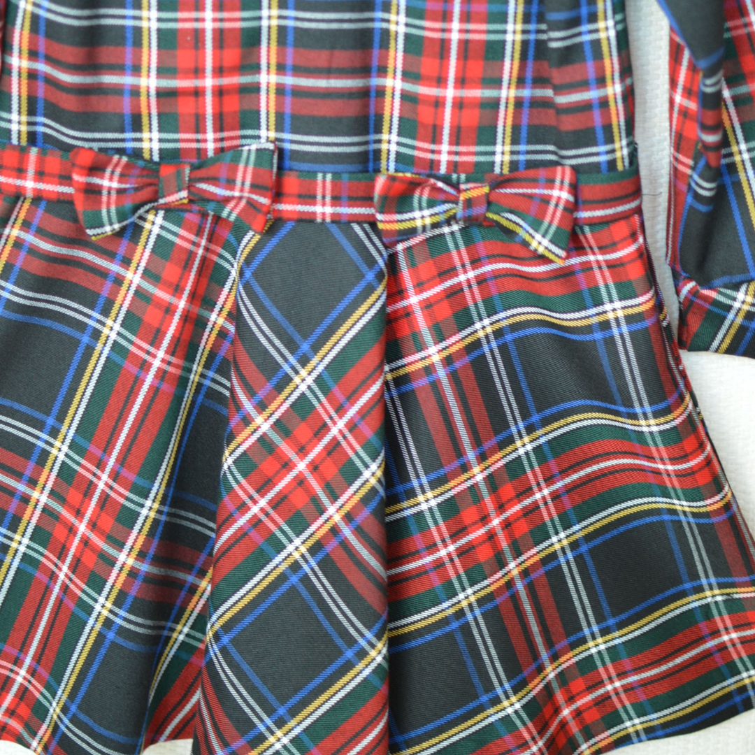 Abito in tessuto Tartan di Viscosa e Poliammide, manica lunga, collo a lupetto, gonna a mezza ruota.